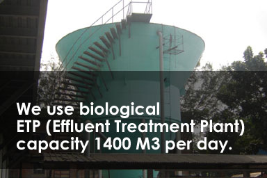 - We use biological ETP (Effluent Treatment Plant)